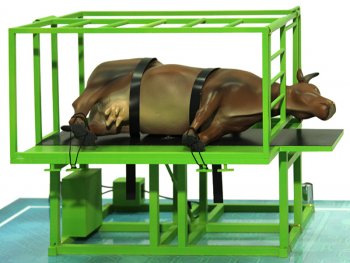 3D-макет «Оборудование и способы фиксации КРС» представляет собой масштабную визуализацию реального оборудования, приспособлений и методов, применяемых для фиксации крупного рогатого скота с целью проведения зоотехнических процедур (уход за копытами, взятие крови, осеменение, клеймение и т. д.) На макете в соответствующем масштабе с соблюдением всех пропорций отображены животные (крупный рогатый скот), закрепленные в станках для проведения зоотехнических процедур в стоячем и лежачем положении.