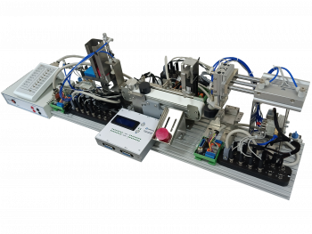 Комплект учебно-лабораторного оборудования представляют собой компактные мехатронные станции. Их можно использовать по отдельности. Каждая станция вполне автономна и предлагает широкий спектр возможностей для обучения. Кроме того, станции могут быть объединены в более сложные «производственные» линии. Это дает большие возможности для обучения работы над проектом. Учебное оборудование демонстрирует упрощенные модели типовых процессов, которые можно встретить на любом автоматизированном производстве. Магазинная станция хранит и выдает заготовки. Конвейерная станция перемещает и сортирует заготовки. Станция переноса поднимает и перемещает заготовки.